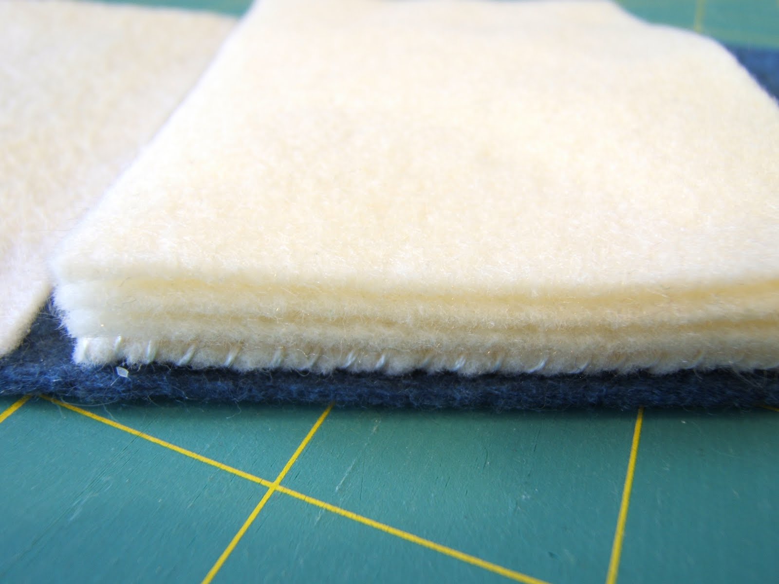 For the first one I started with a rectangle of eco-felt that, when folded up, would fit comfortably in the hand yet not something so small it would get lost in a quilting bag (you can see the measurements on the grid).